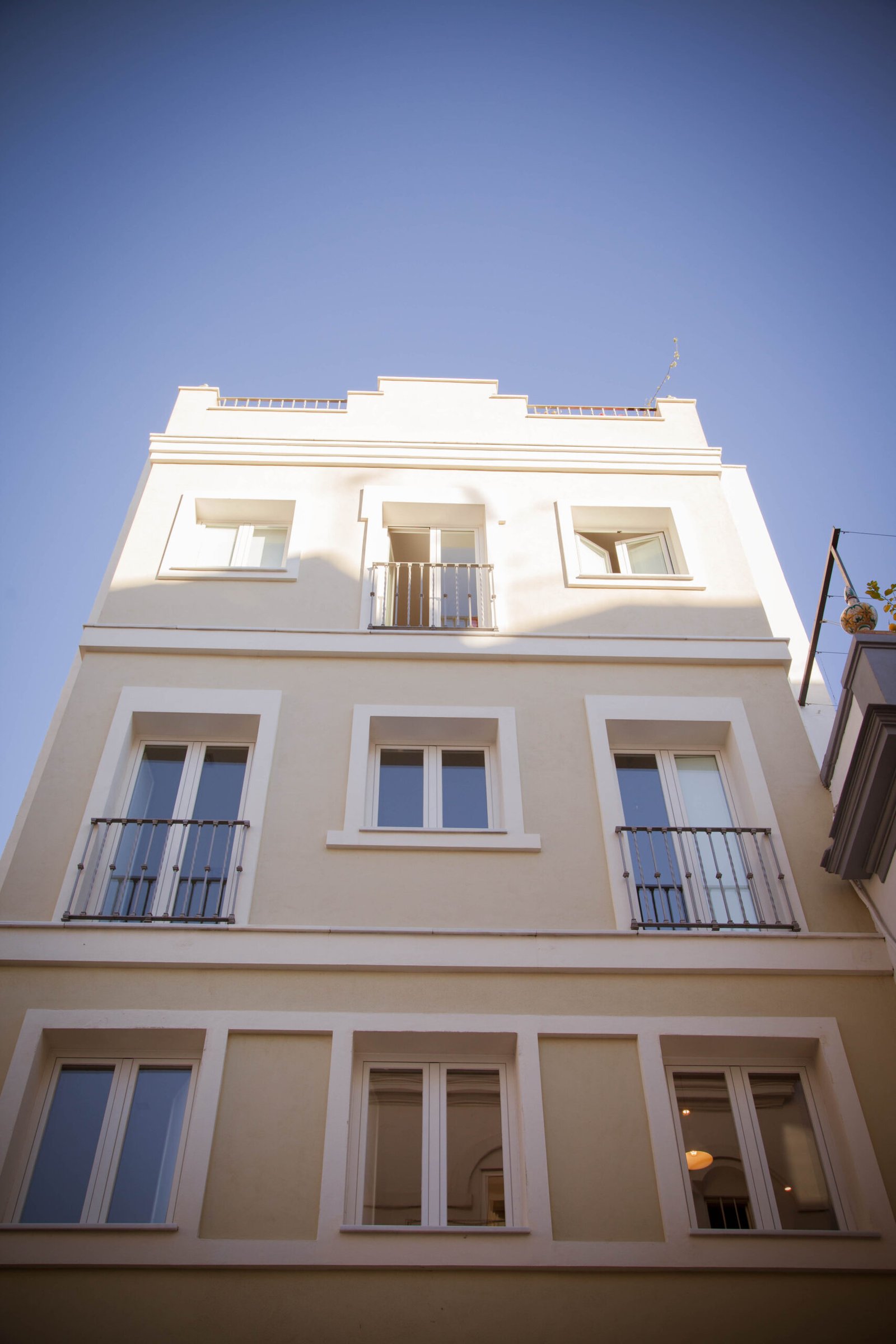 Reforma y trabajo de interiorismo en edificio de tres plantas de altura y una vivienda por cada nivel, situado en el popular barrio de Feria en Sevilla. El uso de dicho inmueble siempre estuvo destinado a casa de vecinos desde su construcción en al año 1940.