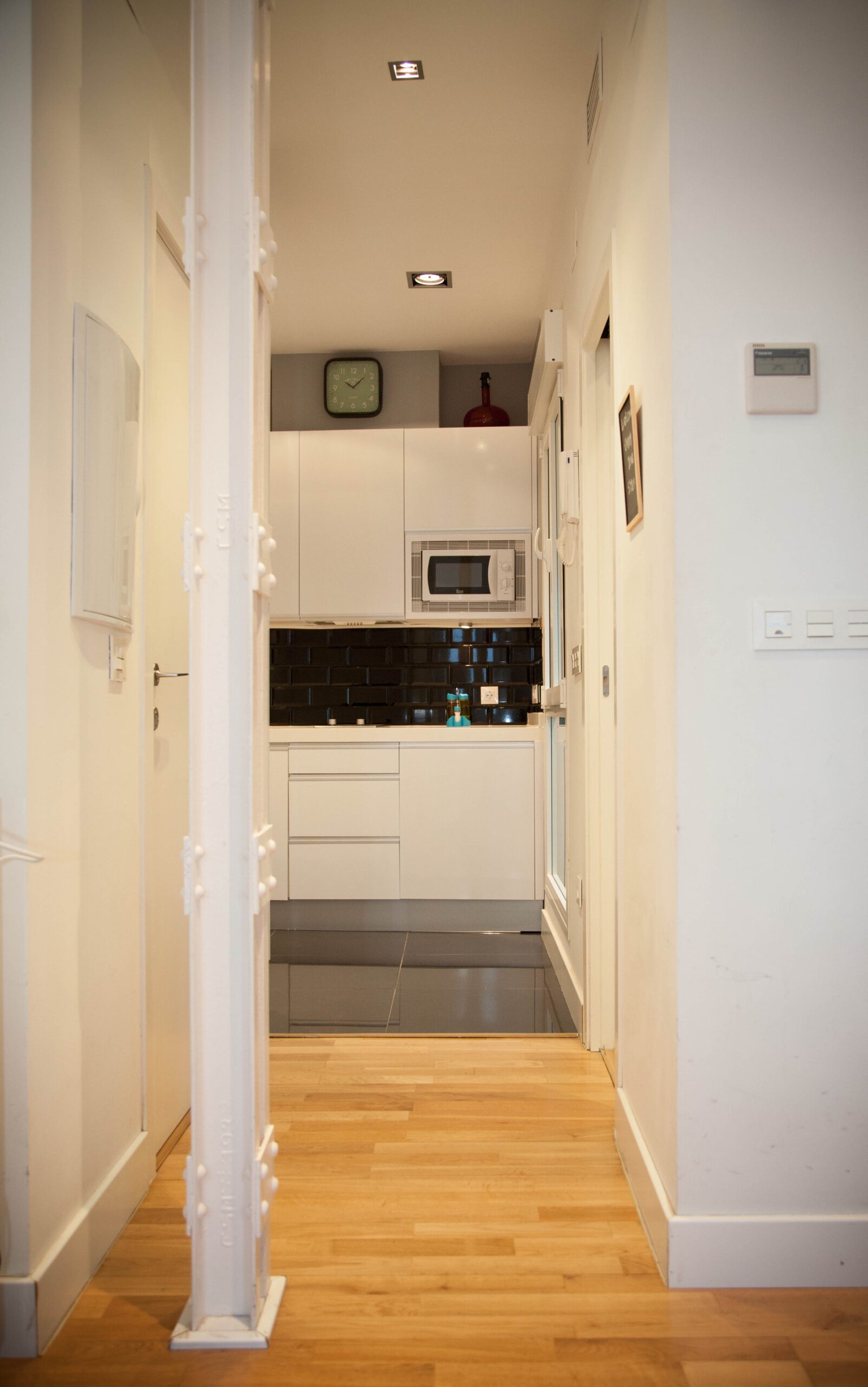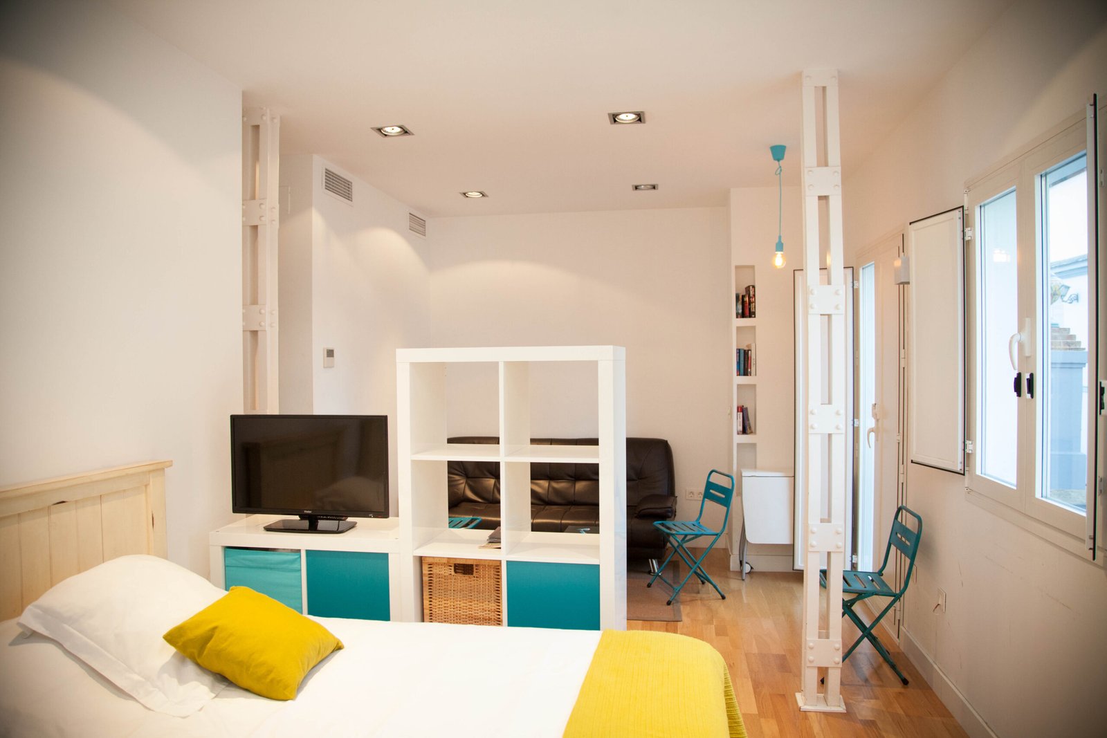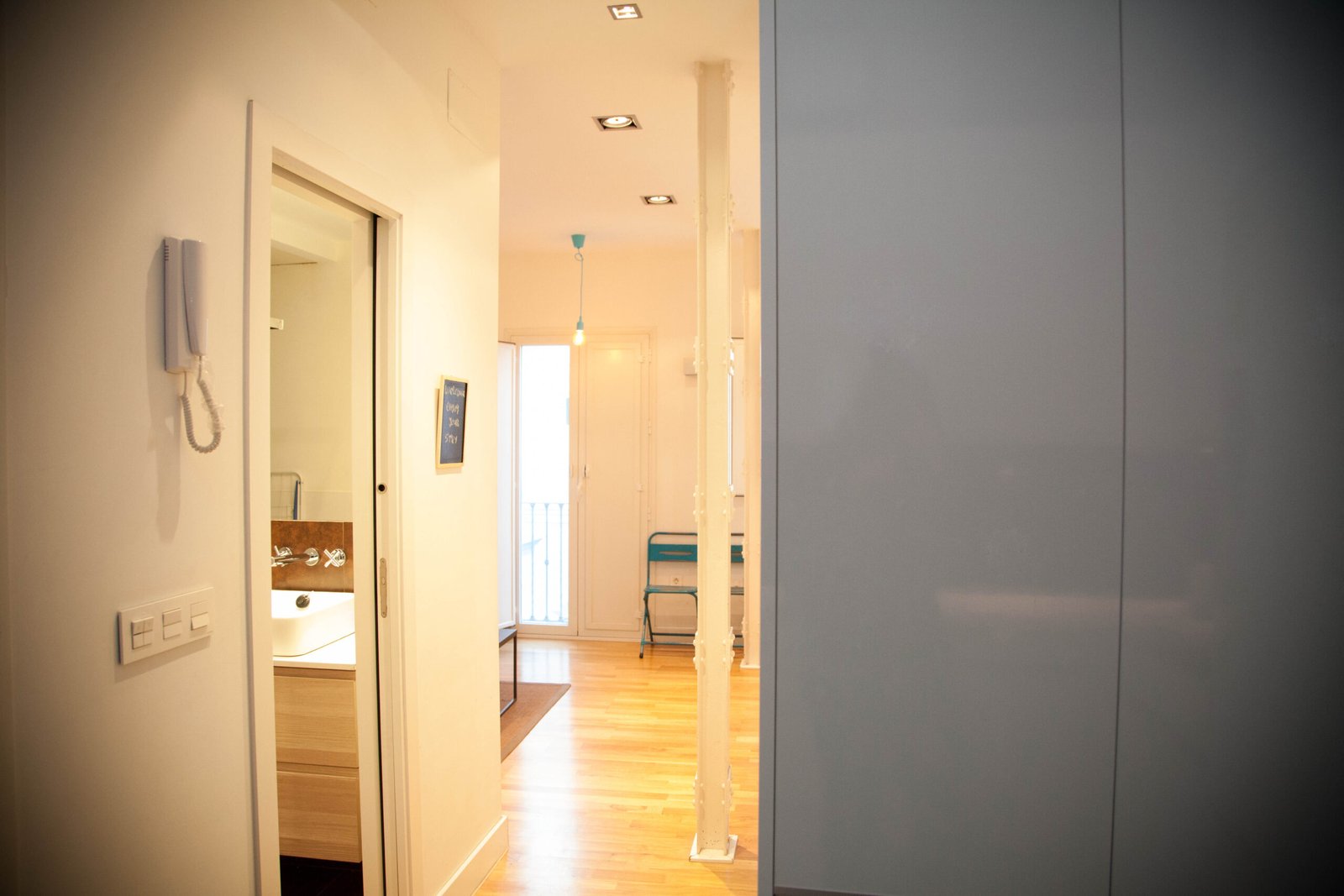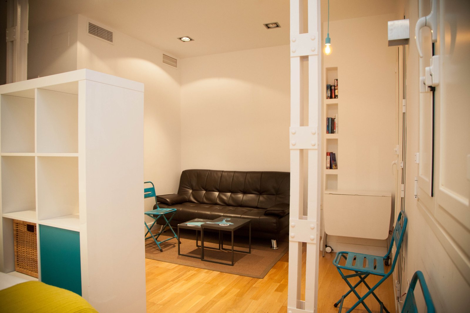 Un trabajo proyectado por el estudio de arquitectura Kriteria plantea tres apartamentos con uso destinado a fines turísticos, una renovación de todas las instalaciones y revestimientos, conservando elementos existentes de la arquitectura de la época entre los que destacan soportes metálicos estructurales con uniones roblonadas, la perfecta elección de materiales, mobiliario y elementos decorativos que se complementan con la luz natural que recibe el edificio crea un especio que aún siendo de dimensiones reducidas hace que todo el conjunto quede ordenado y lleno de color.