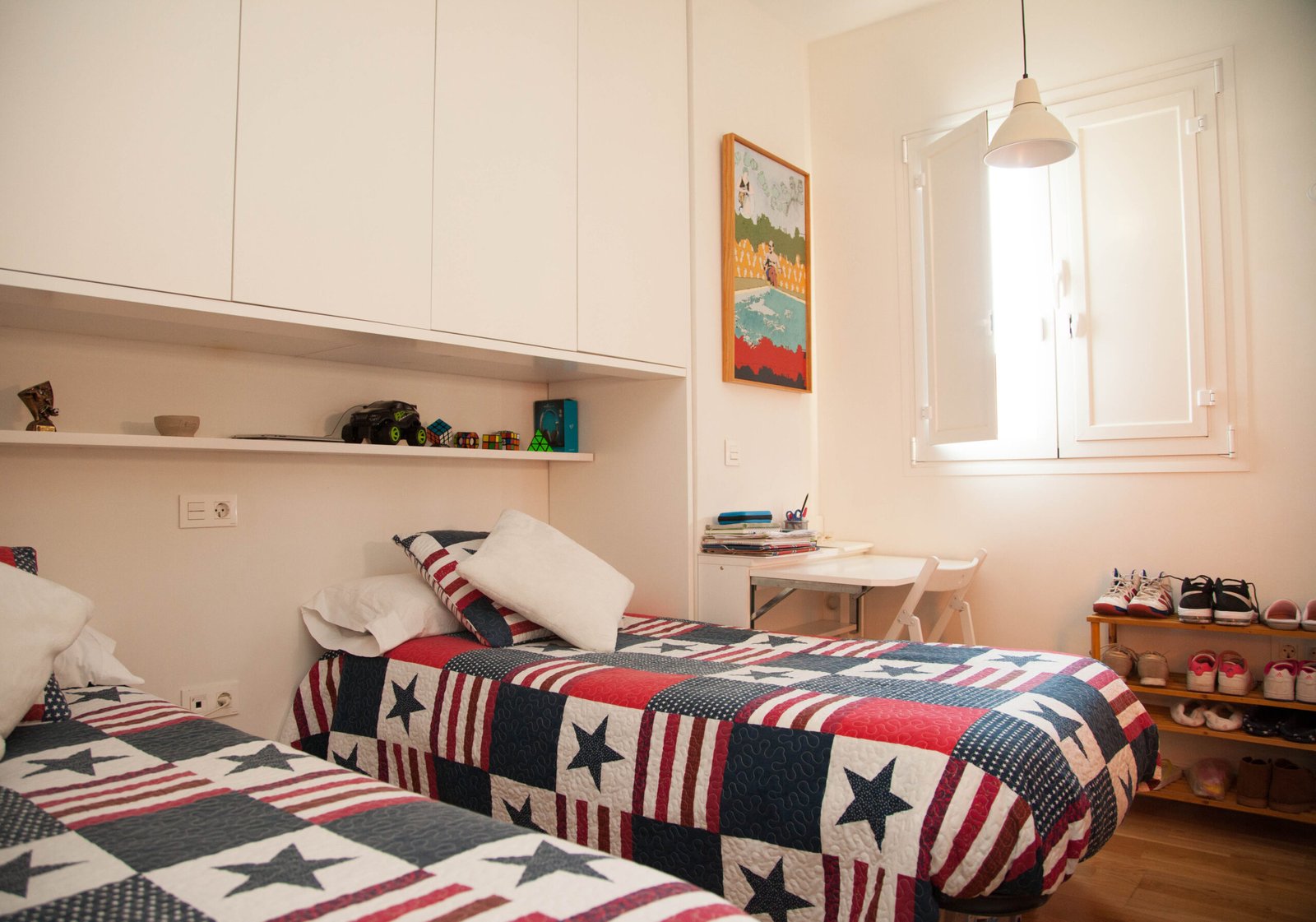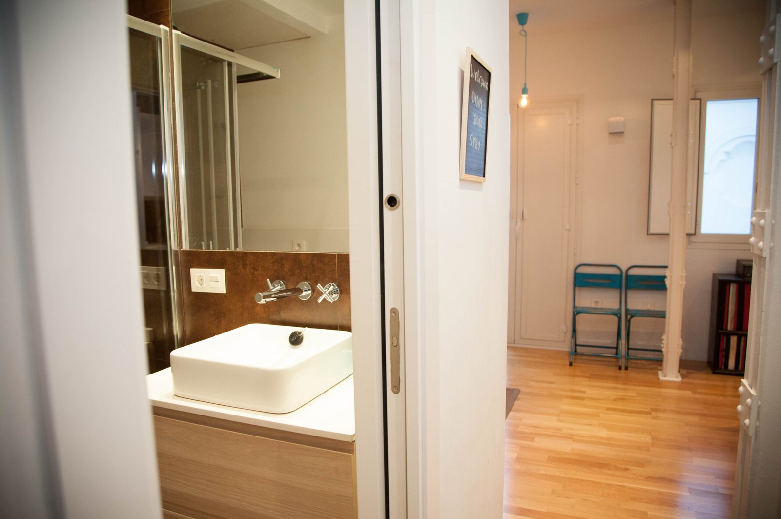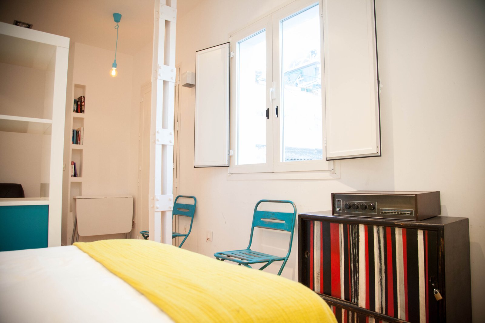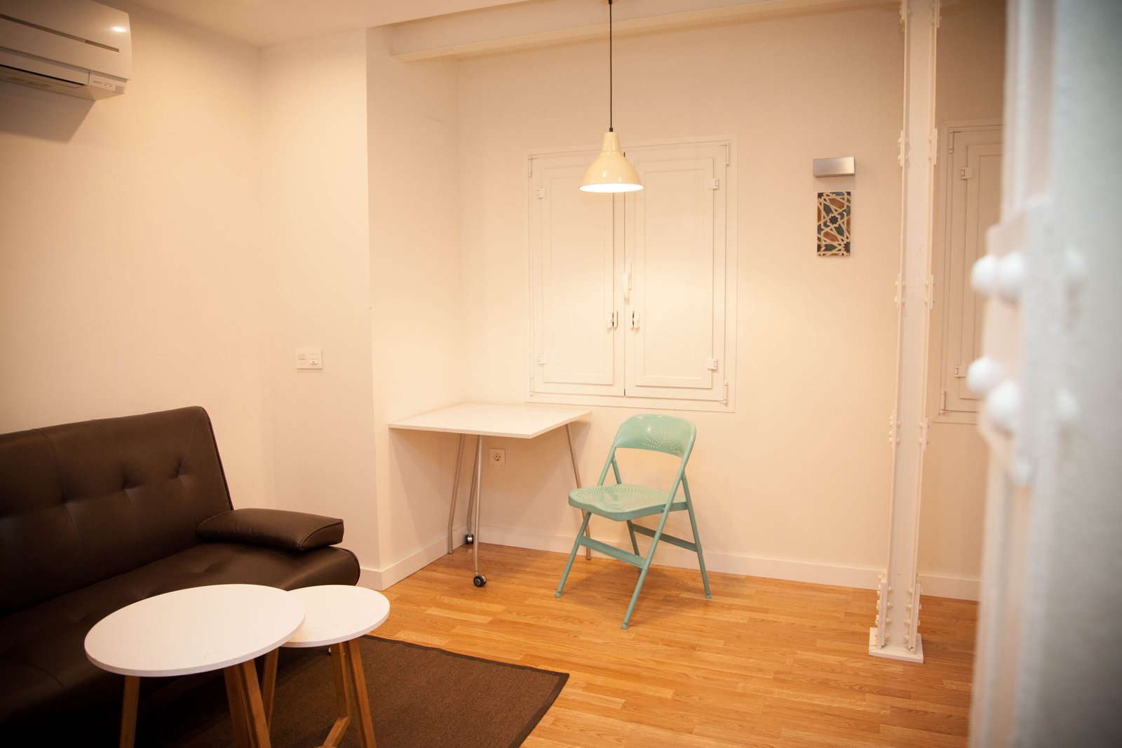 Un trabajo proyectado por el estudio de arquitectura Kriteria plantea tres apartamentos con uso destinado a fines turísticos, una renovación de todas las instalaciones y revestimientos, conservando elementos existentes de la arquitectura de la época entre los que destacan soportes metálicos estructurales con uniones roblonadas, la perfecta elección de materiales, mobiliario y elementos decorativos que se complementan con la luz natural que recibe el edificio crea un especio que aún siendo de dimensiones reducidas hace que todo el conjunto quede ordenado y lleno de color.